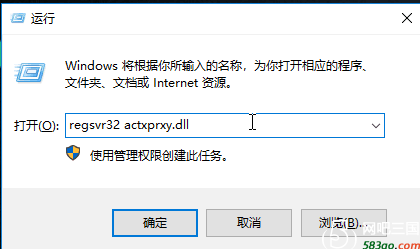 1、按组合键win+r打开运行窗口,输入regsvr32 actxprxy.dll并按回车执行;