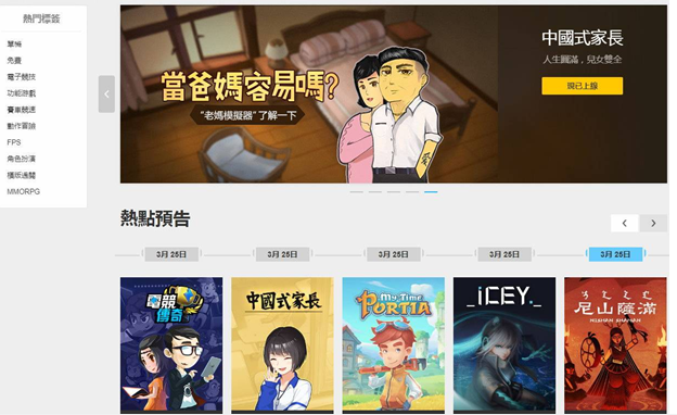 目前,Wegame国际版已经上架17款游戏,其中包括:《中国式家长》、《波西亚时光》、《进击!要塞!》、《电竞传奇》、《王国保卫战:前线》、《蜡烛人》、《河洛群侠传》等,同时在游戏平台页面,玩家还可以在“著名IP”栏目看到Forts、Larian Studios、Deep Silver以及 Hello Games的影